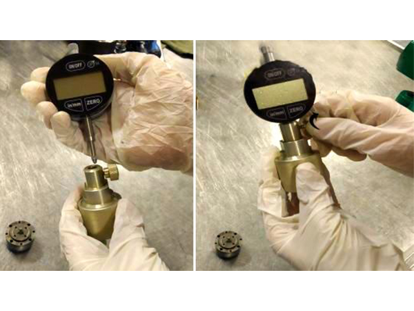 (1) Carefully place the oil control valve into the corresponding position of the travel measuring tool and ensure that the travel measuring tool is tightened to ensure measurement accuracy.