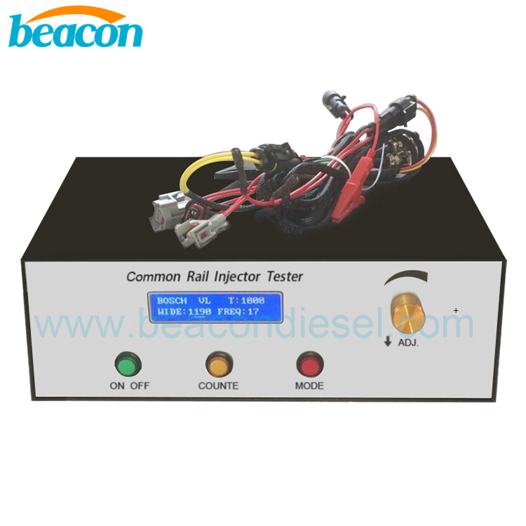 cr1000 can test nozzle spray pattern and injector back leakage, to check the CR injector with either solenoid or piezo technol cri-700, the repair tester to simulate the engine Control Unit (ECU) driving signals for a common rail injector of either solenoid technology or piezo technology, made by Bosch, Delphi, Denso and Siemens. The user is able to set the control parameters of fuel injection drive signals. By combining of a cr1000 tester and a high pressure fuel source, which may be a mechanical manual pump, or an electrical motor driven pump, or a pneumatic driven pressure booster, to feed the CR injector, the user is able to fulfill the tasks, such as nozzle spray pattern and injector back leakage, to check the CR injector with either solenoid or piezo technology.